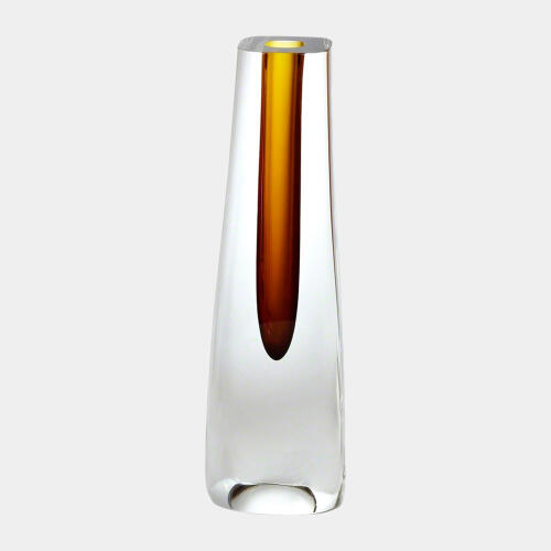 Triangle Cut Glass Vase-Amber