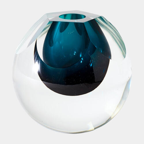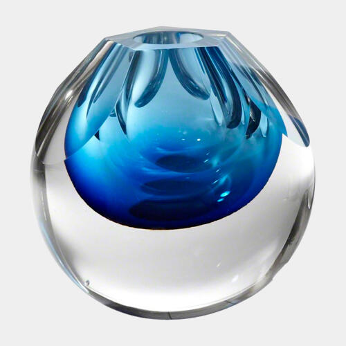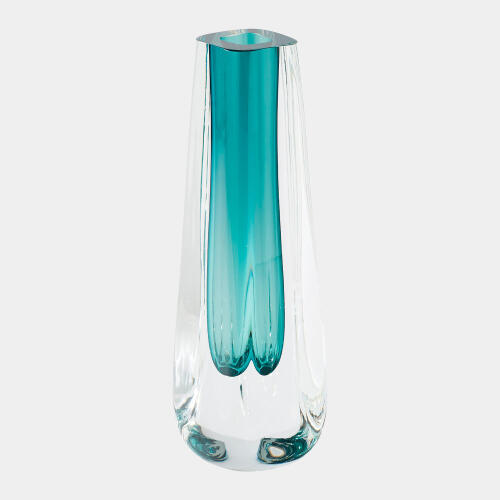 Square Cut Glass Vase-Azure
