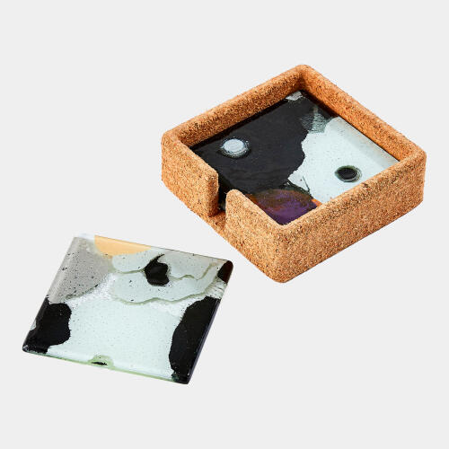 Fused Floral Coaster Set-Neutral