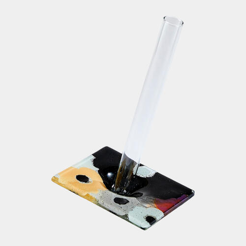 Fused Floral Flat Vase-Bright