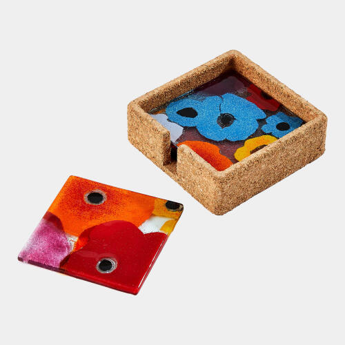Fused Floral Coaster Set-Bright