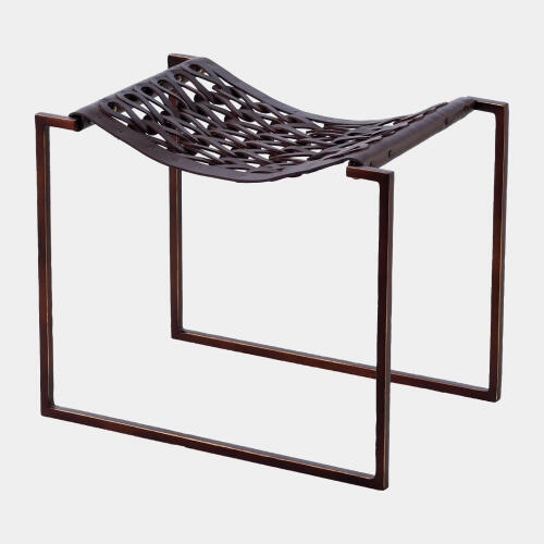 Knit and Pearl Stool-Bronze-Dark Brown Leather