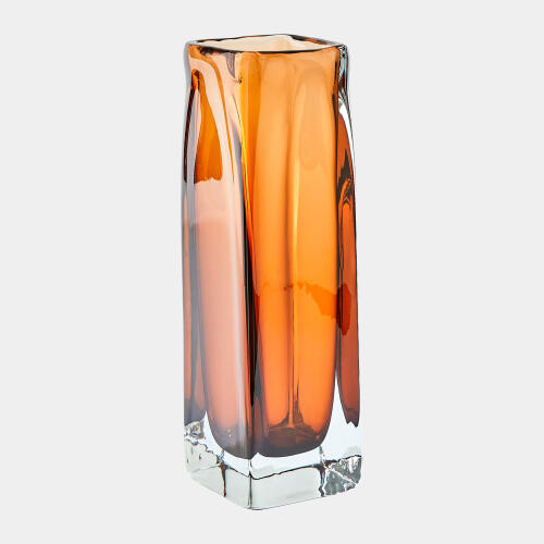 Wide Square Tower Vase-Dark Amber
