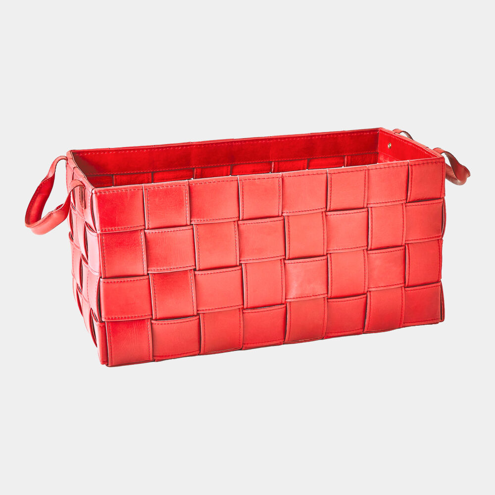 Bronya Soft Woven Leather Basket-Deep Red