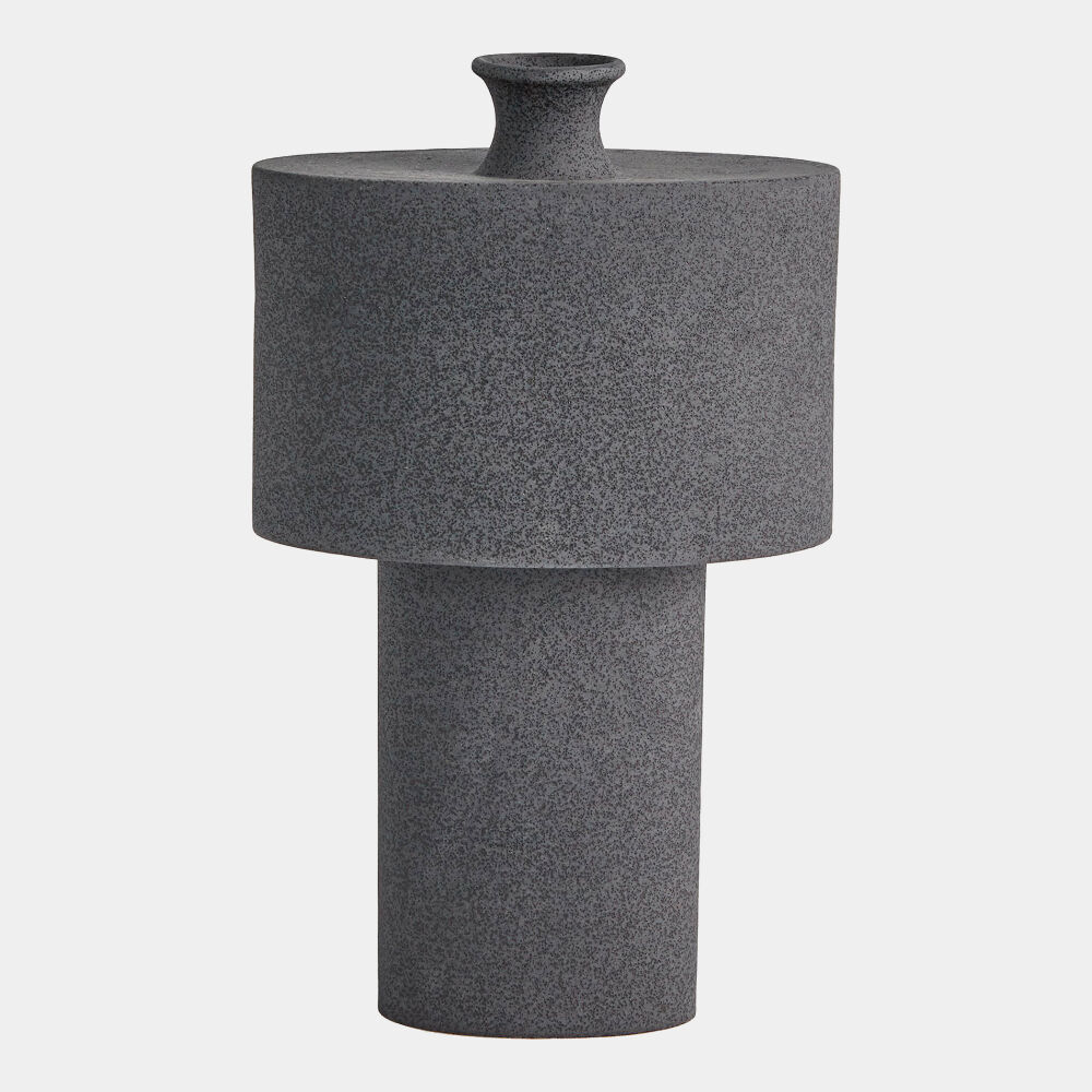 Folk Oval Drum Vase-Black Stone