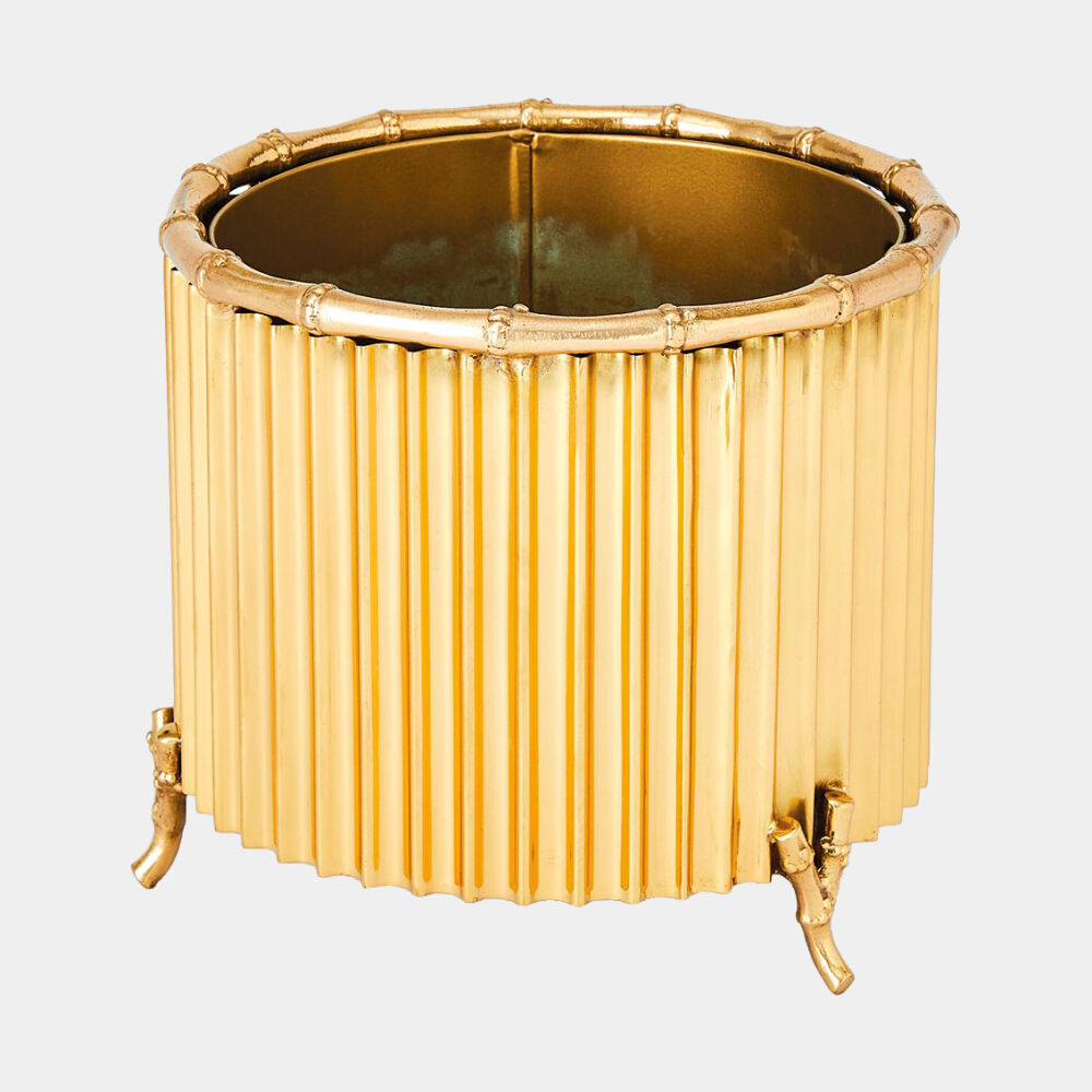 Kai Corrugated Bamboo Cachepot-Brass-Sm