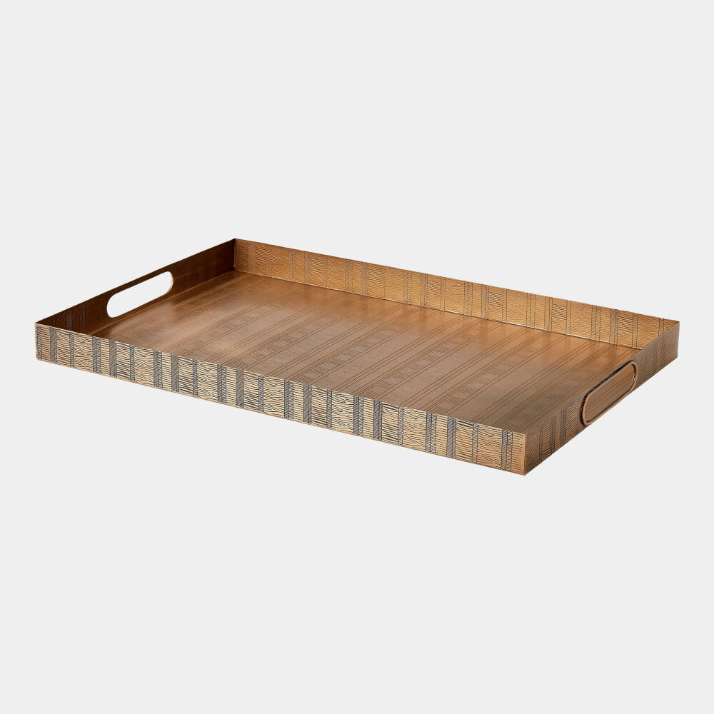 Kokoro Etched Rectangular Tray-Brass