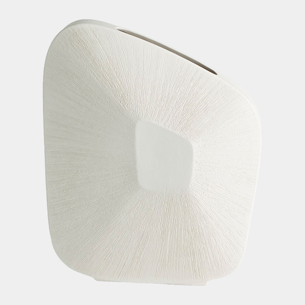 Offset Square Scratch Vase-Matte White-Wide